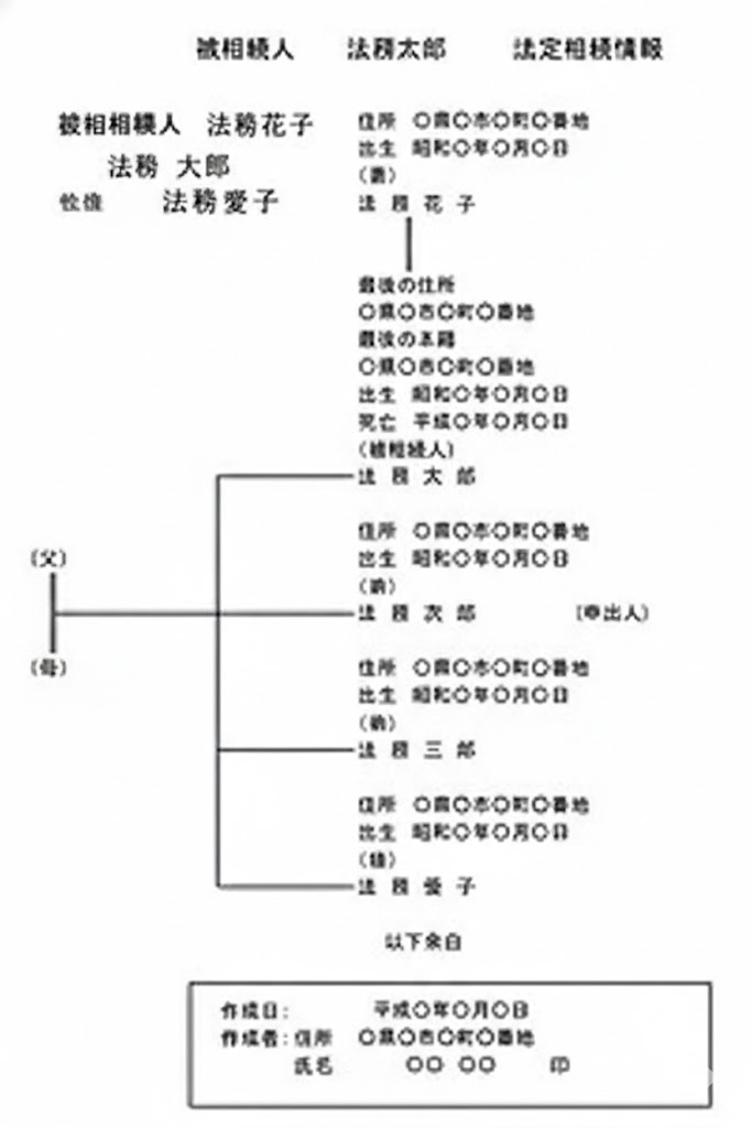 一覧図の写しが交付された後に相続人が引っ越した場合、住所変更による再申出(書き換え)はできません。その場合は、一覧図に加えて、住所のつながりを証明する「住民票の除票」などを別途提出する必要があります。 - 廃除された相続人や相続放棄した人はどう記載されますか?