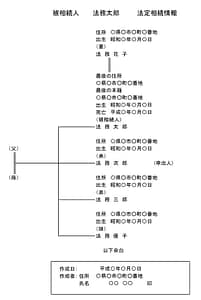 一覧表は、家系図のような表となっています。被相続人(亡くなった人)と相続人の氏名、生年月日、住所、出生日を記し、被相続人については本籍地と死亡年月日の記載が必要です。