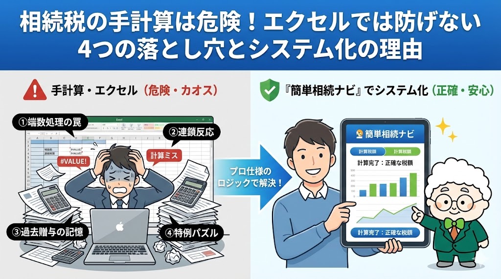 相続税の手計算は危険!エクセルでは防げない4つの落とし穴とシステム化の理由