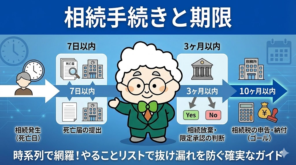 相続手続きの期限と流れ一覧|死亡後のやることリスト【時系列・保存版】