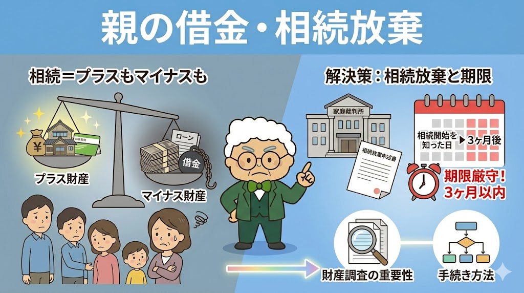 「亡くなった親に多額の借金があった…」「プラスの財産と借金、どっちが多いか分からない」 親の借金が発覚したとき、最も注意しなければならないのが「3ヶ月」という期限です。この期間を過ぎると、自動的に借金を背負うことになり、後から取り消すことは... -