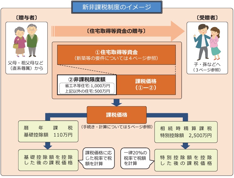 父母や祖父母(直系尊属)から、子や孫(18歳以上)に対して、マイホームの新築・購入・増改築のための資金を贈与した場合、一定額まで贈与税がかからない制度です。
