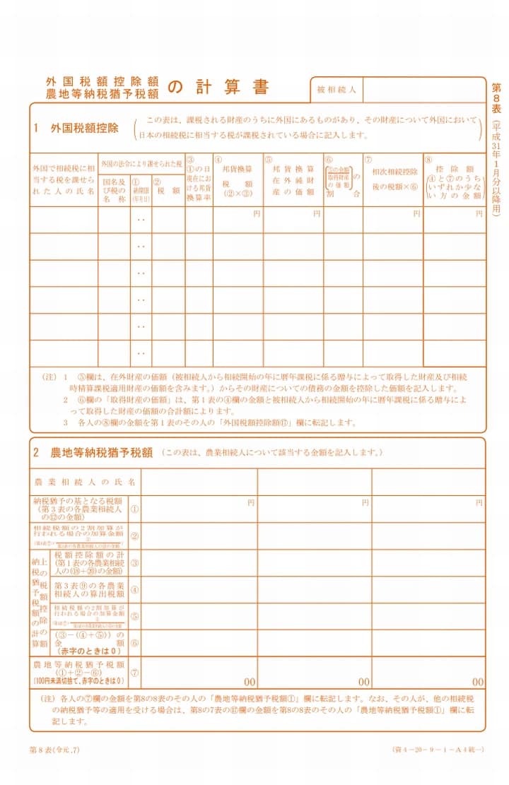 - 相続税申告書第8表(外国税額控除額・農地等納税猶予額の計算書)